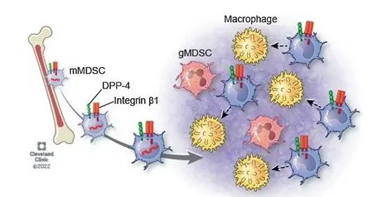 We recently demonstrated that dipeptidyl peptidase 4 (DPP-4) is a regulator of immunosuppressive myeloid cell activity in glioblastoma. We now seek to identify the mechanism by which DPP-4 regulates the pathological function of myeloid cells in cancer to identify potential therapeutic targets.